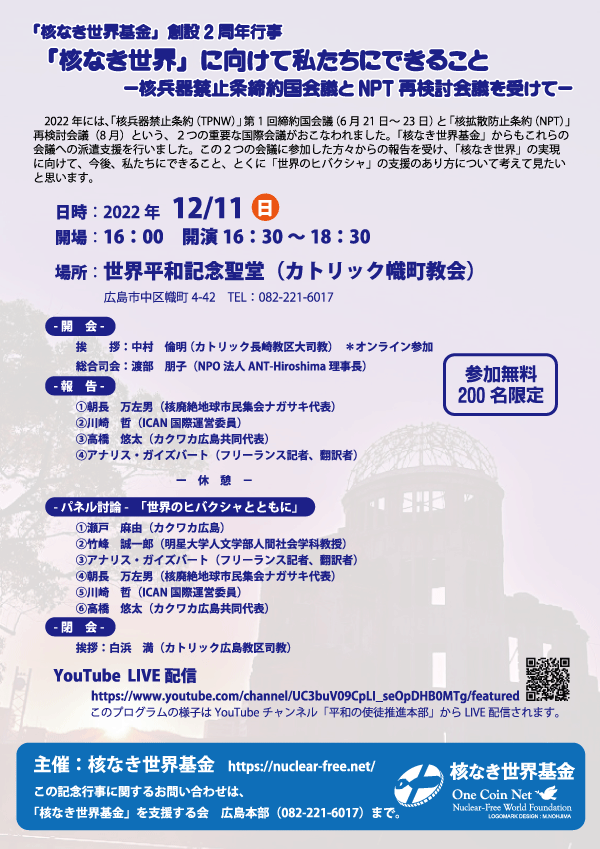 核なき世界基金主催イベント 3/28(土)のお知らせ 2026/03/12