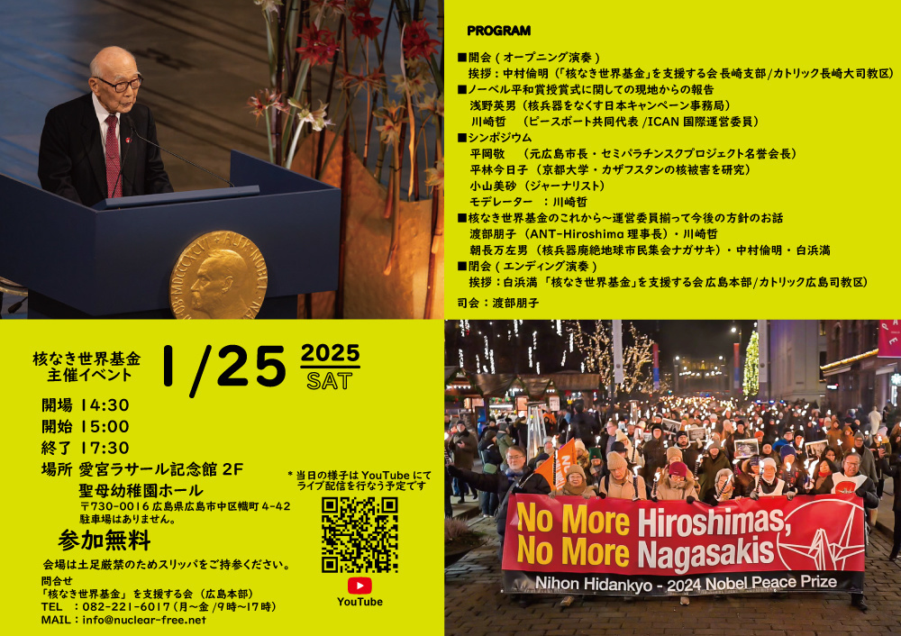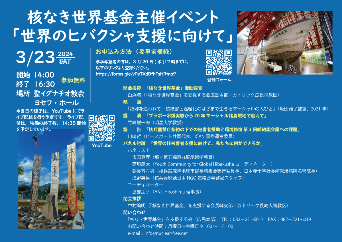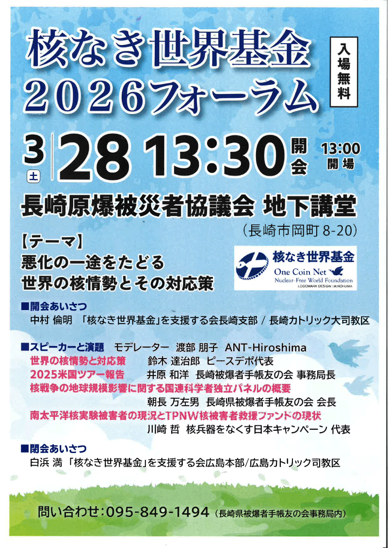 2026核なき世界基金主催イベントが3月28日(土)に長崎市にある長崎原爆被災者協議会の地下講堂で行われます。詳細は下記をご覧ください。尚、参加費は無料です。