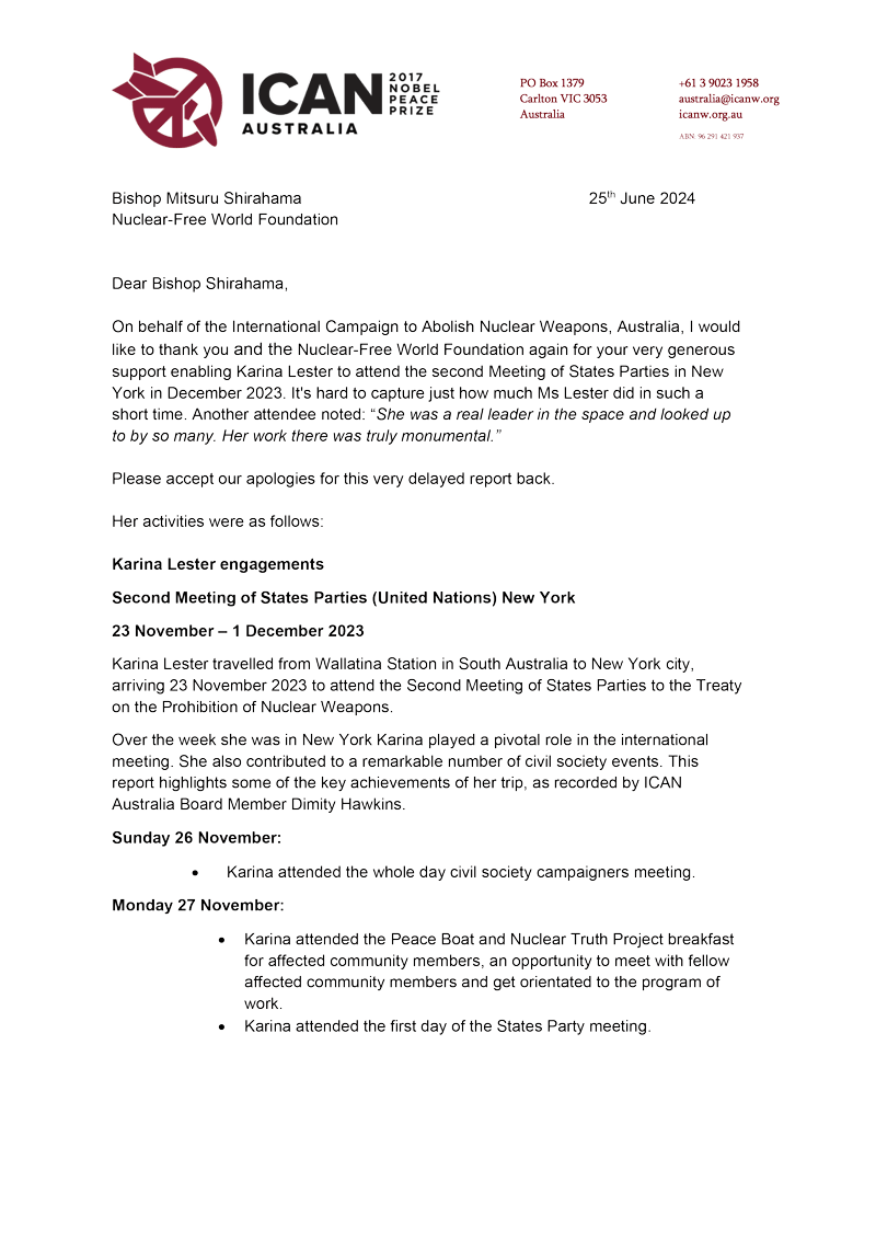 兵器廃絶国際デー訪米渡航支援(2025.09.17)